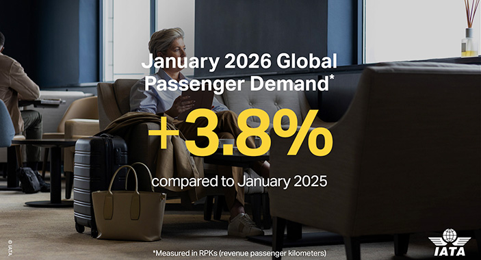 International Air Transport Association (IATA) reported demand for air travel, measured by revenue passenger kilometres (RPK), rose 3.8% in January, compared with the same month last year. Read More » This was down from 5.8% year-on-year RPK growth achieved in December last year. Capacity rose 3.5% in January, while passenger load factor increased 0.2 of a percentage point to 82%. "The timing of the Lunar New Year partly explains the slightly slower 3.8% expansion in January, but the fundamentals are in place for demand to continue strong growth in 2026," IATA director-general Willie Walsh said. "Schedule data, for example, indicate a 5.2% increase in global seat capacity by March, which would be the fastest expansion since April 2024." The airline lobby group said the Asia-Pacific region grew RPKs 1.4%, well below the 6.3% expansion in December, which also reflected the shift in the Lunar New Year. Capacity was 1.8% higher and passenger load factor down 0.7 of a percentage point at 83.9% in the 31 days. Looking ahead, Walsh said the conflict in the Gulf region "introduced some uncertainty into the evolution of traffic and fuel costs". The IATA boss called for all states to "respect their obligation to keep civilians, and civil aviation free from harm".