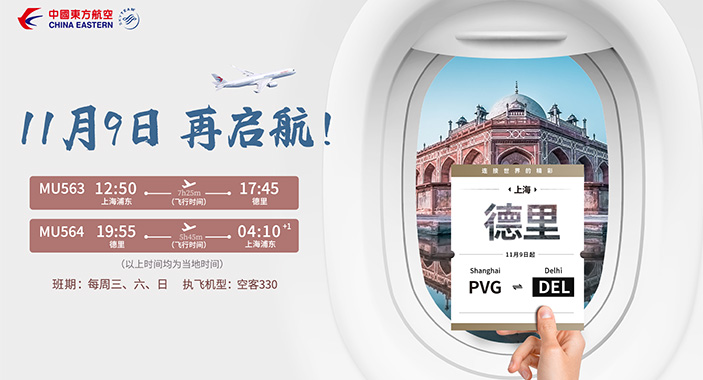 China Eastern Airlines (CEA) is restarting nonstop flights to Delhi from its Shanghai Pudong hub on November 9. Read More » The SkyTeam alliance member has scheduled three flights a week on the Delhi-Pudong route with A330-200 aircraft, local media reported, citing comments from an airline spokesperson. The first flight takes off on November 9. Airlines from both countries suspended nonstop flights linking China and India in 2020 amid rising geopolitical tensions. CEA’s announcement follows IndiGo’s planned resumption of India-China flights next month.