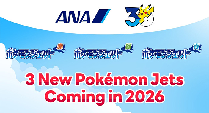 All Nippon Airways (ANA) and The Pokémon Company announced that they will introduce three specially painted “Pokémon Jet” aircraft featuring Pocket Monsters (Pokémon) designs this year to commemorate the 30th anniversary of the Pokémon brand. Read More »